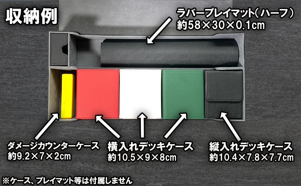 【マルチ収納】このデッキケースは、カードだけでなくプレイマットやダイスなどのアクセサリーも一緒に収納できる設計。