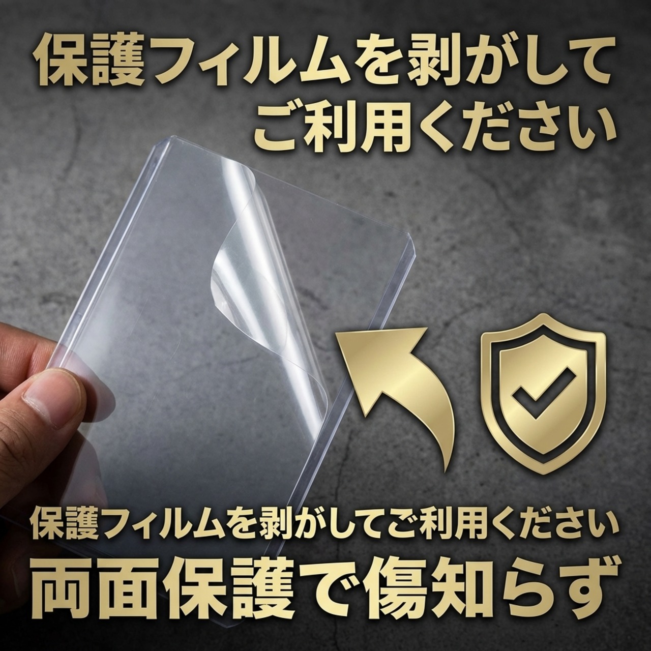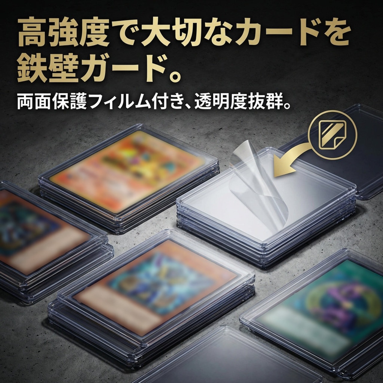 約1.7mmの厚みと、カードをしっかりとホールドする硬質な設計により、物理的なダメージからあなたのカードを守り抜きます。輸送中の衝撃、保管時の圧力、そして誤って落としてしまった際の曲がりや折れから、大切なカードを強力に保護。何年経っても、その価値を維持するための「鎧」となります。
