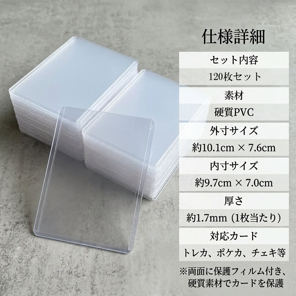 トップローダー 120枚セット - 保護フィルム付き 35pt【透明・硬質】トレーディングカードプロテクター ポケモン, MTG, 遊戯王など対応 PVC コレクション・ディスプレイ・保管用